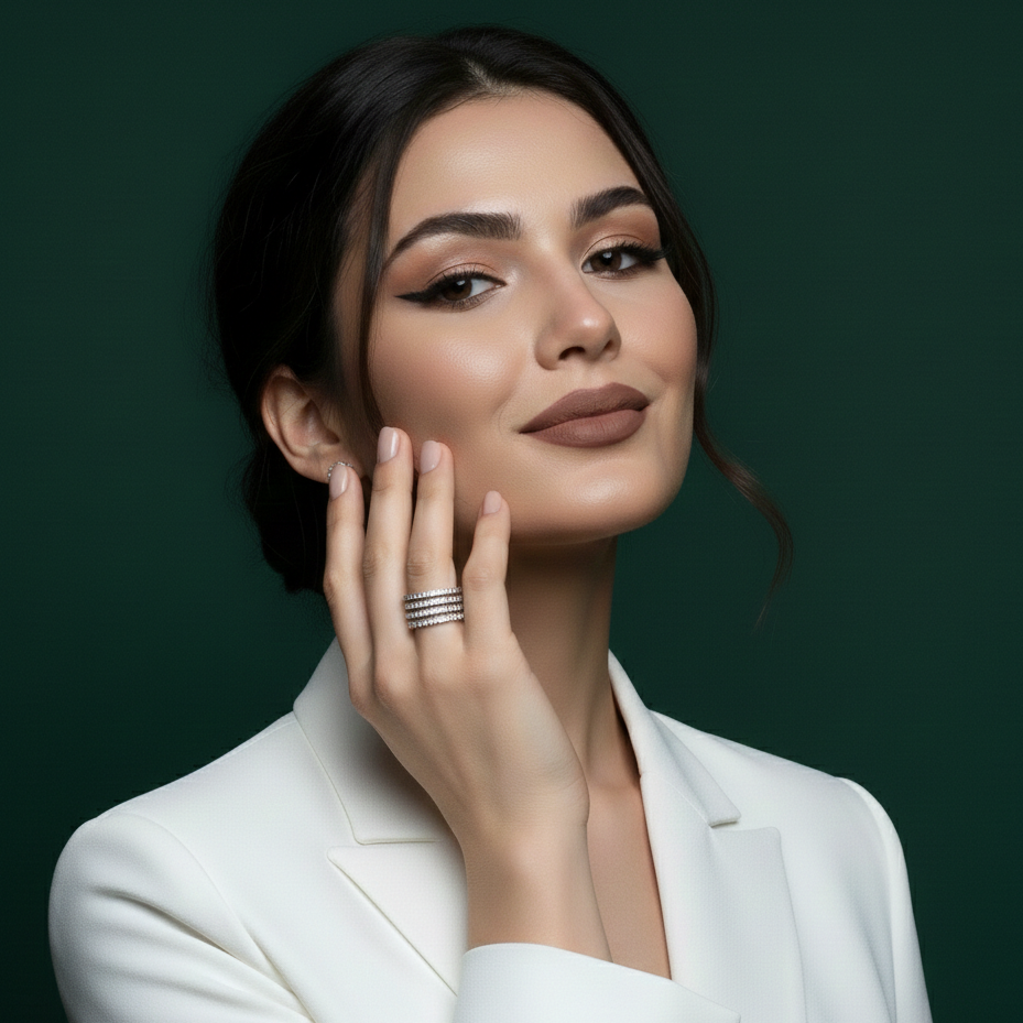 A seamless circle of brilliant light, the Moissanite Eternity Band offers a timeless silhouette designed to radiate elegance from every angle.